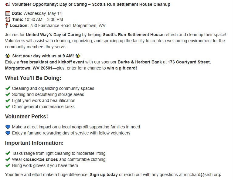 Day of Caring – Scott’s Run Settlement House Cleanup