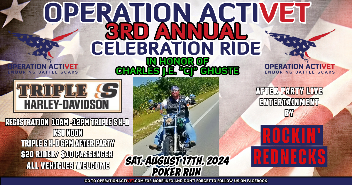 Operation Activet is looking for volunteers to assist with our annual bike ride. The ride is dedicated to the founder of Operation Activet, CJ Ghuste. CJ lost his life in 2019 in a motorcycle accident. The ride will start and end at Triple S H-D. We will need some help with registration on the day of the event. We will also need people at all the planned stops. Volunteers are invited to the after-party at Triple S H-D. Registration on event day will be 10-12 pm, with the sendoff happening directly after. The after-party is scheduled for 6 pm. For any questions involving the event call Chuck at 304-692-0334.